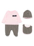 A sophisticated three-piece baby set from Balmain, combining elegance and comfort.