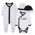 White and Black Cotton Newborn Gift Set with Babygrow, Bodysuit and Two Hats