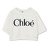 This short-sleeve sweatshirt from Chloé is crafted from 100% organic cotton unbrushed fleece, offering a soft and lightweight feel. Featuring an oversized Chloé print on the front, it exudes a modern and stylish vibe. Inspired by the brand's adult collections, this sweatshirt is perfect for casual outings or layered looks, blending sustainability with contemporary design.