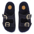 Navy Suede Sandals with Faux Shearling Insole and Gold Buckles