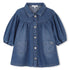This charming denim dress from Chloé combines classic shirt styling with feminine gathered detailing for a versatile everyday piece. The long sleeved dress features a traditional collar and full button front closure with branded gold tone buttons, creating an easy to wear silhouette perfect for active little ones. Designed with a gathered yoke that adds volume and movement to the bodice, the dress includes puffed sleeves with elasticated cuffs for comfortable wear. Two practical patch pockets at the front are adorned with the brand's signature logo embroidered in gold thread. The soft blue denim wash offers a contemporary look whilst remaining durable for daily adventures. This baby girl dress works beautifully as a standalone piece or layered over leggings and tights, making it suitable for various occasions from casual playdates to family gatherings. The relaxed fit and comfortable fabric ensure freedom of movement for crawling, playing and exploring.