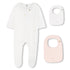 White Cotton Babygrow with Two Bibs Gift Set in Ivory and Pink