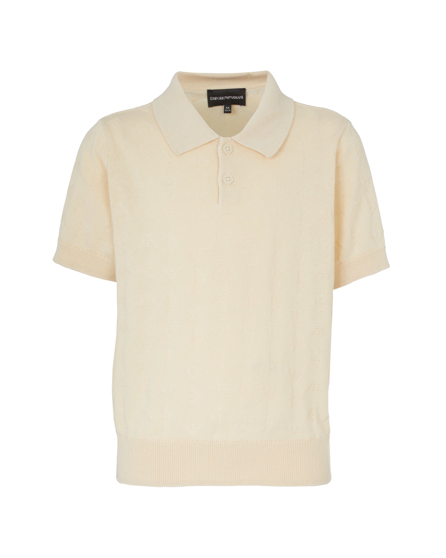 Effortlessly elegant with a heritage feel, this short-sleeve knit pullover is a refined update to the classic polo shirt. Crafted in a warm cream hue with an all-over textured eagle jacquard, this piece speaks to understated luxury—perfect for dressy occasions or polished everyday looks.