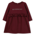 This long-sleeved dress from Givenchy blends timeless elegance with playful charm. Made from soft cotton jersey, it features a shimmering Givenchy logo across the chest and a delicate ruffle trim at the waist for a feminine touch. The relaxed A-line silhouette ensures comfort and ease of movement, making it perfect for both everyday wear and special occasions. Its deep burgundy hue adds sophistication while maintaining a youthful appeal.