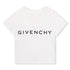 This Givenchy short sleeves tee-shirt, crafted from soft organic cotton jersey, features a convenient shoulder snap closure for easy dressing. The front showcases a bold Givenchy print, while the back is adorned with the iconic 4G print at the bottom. This tee combines comfort with signature style, making it perfect for casual wear with a luxury touch.