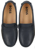 Elevate your child's footwear collection with the Hugo Boss Moccasin, a blend of premium craftsmanship and timeless style. Made from smooth cow leather, these loafers feature subtle branding on the apron, adding a touch of sophistication. With breathable microfiber lining and insock, they ensure maximum comfort for little feet. Perfect for formal or smart-casual occasions, these moccasins are proudly made in Portugal and come in a branded shoe box for an elegant presentation.