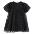 This Karl Lagerfeld Kids dress captures elegance with a contemporary twist, featuring sheer puff sleeves and a flowing silhouette. Designed in classic black, it is adorned with delicate bead embellishments across the lower half, adding subtle sparkle and texture. The lightweight overlay enhances movement, making it a refined choice for special occasions and celebrations. A statement piece that combines timeless style with youthful sophistication.