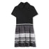 Pleated Skirt Dress with Contrast Collar, Black and Grey
