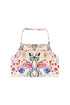 Designed In Australia. The Monserrate Magic Kids Halter Crop in stretch jersey4-10 features a white base adorned with butterflies, leopards, and intricate details reflecting the palace's exotic gardens and the eclectic architecture reflecting Sintra.