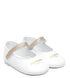 Balmain Paris logo-print leather ballerina shoes in white calf leather, logo print to the front, glitter detailing branded.  Round toe front with touch-strap fastening.