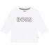 100% cotton jersey long sleeves t-shirt, snap fastener at shoulder, branded woven label on the side, "BOSS" print on front.\n 100% COTTON - TRIMMING: 96% COTTON, 4% ELASTANE