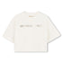 This Michael Kors short sleeve t-shirt is crafted from soft cotton in a clean white finish, offering timeless simplicity with a modern edge. The front features the brand’s signature logo in a metallic effect, adding a touch of sophistication to the minimalist design. Comfortable and versatile, this piece is perfect for everyday wear and easy to style with jeans, skirts, or shorts.