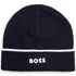 Cotton knitted hat, with stripe in contrasted color. Double layers for more heat. Rubber print in contrasted color, on the turn-up.\n 100% COTTON