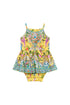 The Tales Of Topkapi Palace Babies Jump Dress With Frill Neck is a handcrafted cotton silhouette designed by our in house artisans. Reimagined in an exclusive limited edition print, our babies jump dress features a scooped neckline with frilled edges and a gathered full skirt layered over soft bloomers with frilled leg lines.