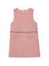 This sleeveless dress is crafted from a softly textured tweed-style fabric, offering a structured yet comfortable silhouette suitable for both special occasions and refined everyday wear. The design features a rounded neckline, decorative front buttons, and a subtle embellished trim at the waist that adds gentle definition and visual interest. Finished with small front pocket details and a clean straight hem, it balances classic tailoring with delicate detailing. Designed by Tutu Du Monde, this piece aligns with searches for girls tweed dresses, sleeveless occasion dresses for children, and structured dresses with elegant detailing.