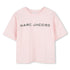 A stylish and timeless addition to any young fashionista’s wardrobe, this short-sleeved T-shirt from The Marc Jacobs exudes effortless elegance. Crafted from premium cotton, it ensures a soft and breathable feel for all-day comfort. The front showcases a dazzling embellished logo, adding a touch of glamour to a classic silhouette. Perfect for pairing with jeans, skirts, or shorts for a chic everyday look.